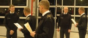 To brandmænd fik overrakt hæderstegn for lang og tro tjeneste af af beredskabschef Jens Mølgaard assisteret af viceberedskabschef og stationsleder i Ribe, Kjeld Tauman.