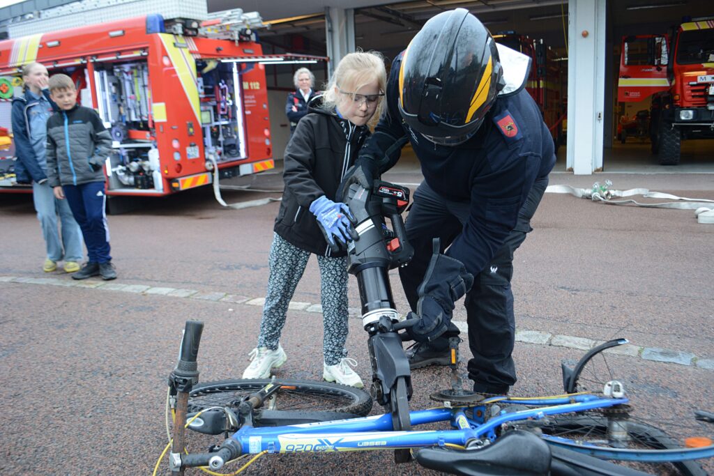 Desuden fik FDF’erne mulighed for selv at bruge noget af værktøjet, da de fik lov at klippe en cykel i flere stykker. Værktøjet, der blev brugt, anvendes normalt ved trafikulykker, hvor bilerne er så svært beskadiget, at personerne i bilerne ikke kan komme ud ved egen hjælp. Det kraftige klippeværktøj bruges til at klippe taget eller dørene af bilen, så de kvæstede kan komme ud.
