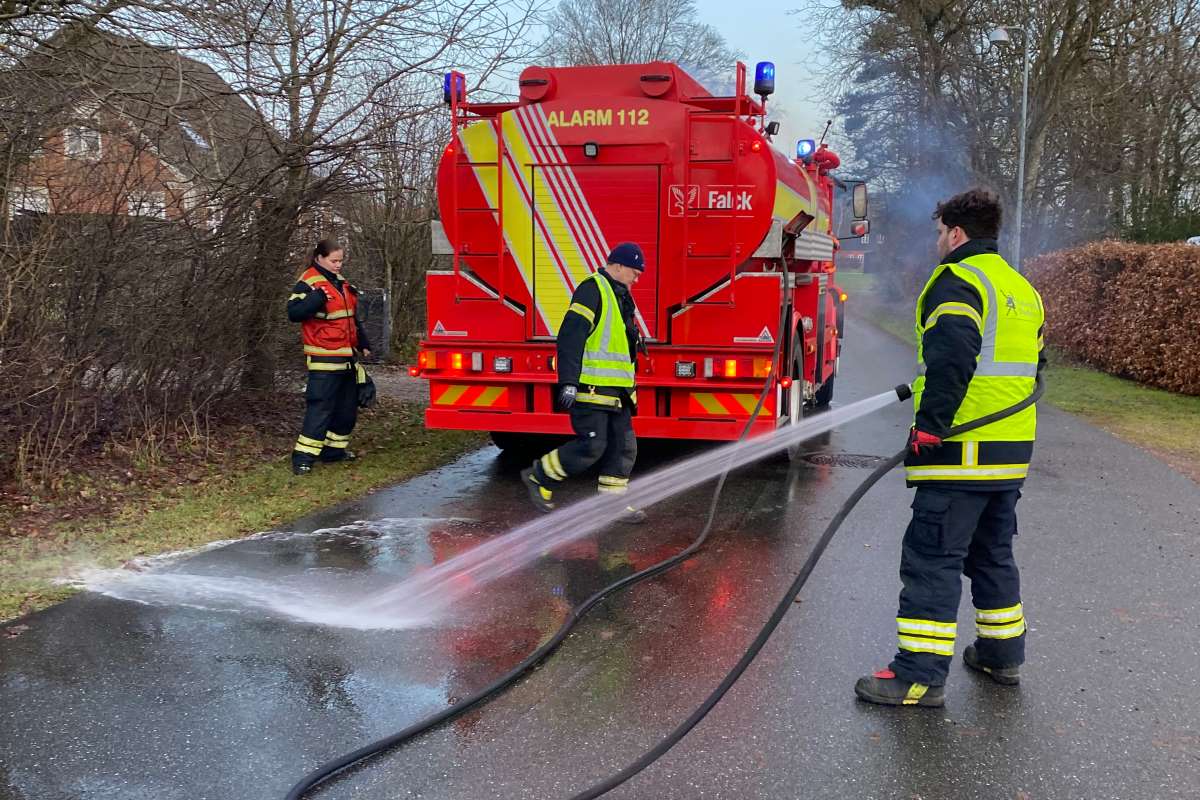 (Onsdag den 20. december 20 23) Oliefilm på vejen gjorde, at en del af Stavnagervej i Obbekær onsdag eftermiddag var meget glat.