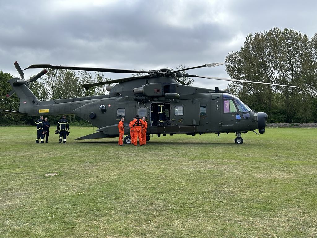 Under normale omstændigheder vil Unimog’en kunne køre i op mod en halv meter vand på Låningsvejen, men skulle den indsats være for lidt eller er vandstanden højere, skal der andre transportformer til, og her kommer helikopteren ind i billedet. Fredagens øvelse blev særdeles vellykket, hvor der blev indøvet samarbejde med flyvevåbenets folk og brandmændene indbyrdes.