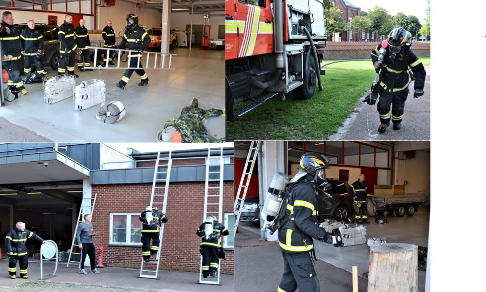 På brandstationen gennemgik brandmændene en øvelse, hvor de gennemførte en række opgaver iført åndedrætsbeskyttelse. På den måde kan man se, hvor meget ilt, den enkelte brandmand bruger under udførelsen af arbejdet, og det giver en indikation af, i hvor god form den enkelte er.
