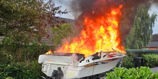 Hasse2023-08-03T19:37:53+00:00(Torsdag den 3. august 2023) En speedbåd, der stod på en trailer ved et hus på Seminarievej, kommer næppe nogen sinde ud at sejle igen. Ejeren af speedbåden var netop ved at klargøre den, og han ville starte motoren for at se, om den kunne køre. Det kunne den, men kort tid efter brød motoren [...]