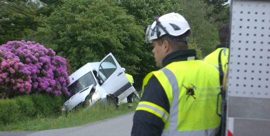 Hasse2022-05-28T09:28:01+00:00(Lørdag den 28. maj 2022) Ud over en stor forskrækkelse kom ingen personer noget til, da en minibus i et solouheld kørte i grøften på Haulundvej lørdag formiddag. Bag i bussen sad en ung mand i en kørestol, og da det umiddelbart var umuligt at få kørestolen ud, blev Sydvestjysk Brandvæsen i Ribe tilkaldt. Brandfolkene [...]