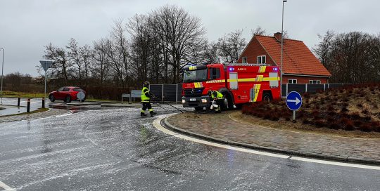 Hasse2022-02-20T16:29:56+00:00(Søndag den 20. februar) Brandfolkene kom på en lidt våd omgang, da de søndag formiddag måtte rense rundkørslen ved Nørremarksvej-Obbekærvej samt vejstrækningen fra rundkørslen til det lysregulerede kryds ved hovedvejen. Forureningen skyldtes tabt olie – formentligt hydraulikolie, og det gjorde kørebanen meget glat. På mindre end en time fik brandfolkene vejstykkerne renset, så trafikken kunne [...]