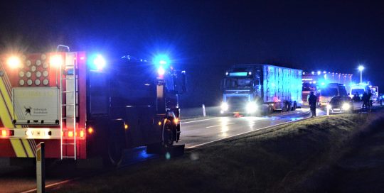 Hasse2019-11-11T14:04:27+00:00(Mandag den 11. november) Brandvæsnet måtte mandag lige før middag assistere, da et lastvognstog bestående af forvogn og anhænger med en samlet vægt på 56 tons væltede på Haulundvej. Meldingen lød på færdselsuheld med fastklemte, men heldigvis kom ingen noget til ved uheldet. En brandmand kom tilfældigt forbi lige efter uheldet var sket, og han [...]