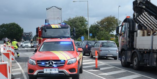 Hasse2019-08-08T09:28:07+00:00(Torsdag den 8. august) Det gav store trafikale problemer, da en gasledning torsdag formiddag under gravearbejde i forbindelse med det nye vejanlæg blev revet over. Uheldet skete på den stærkt trafikerede hovedvej 11, Trojelsvej, lige nord for jernbaneoverskæringen. Det var nødvendigt at spærre for den sydgående trafik ved lysreguleringen ved Nørremarksvej. Trfikken blev ledet ind [...]