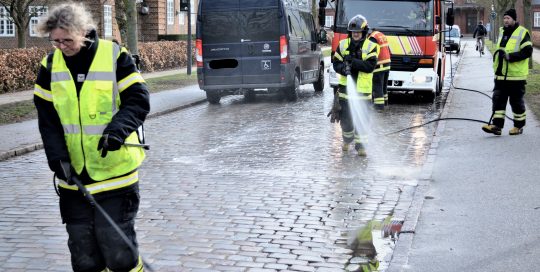 Hasse2019-03-16T09:06:08+00:00(Lørdag 16. marts) Omkring fem timer tog det mandskab fra Sydvestjysk Brandvæsen i Ribe at rense gaderne i store dele af den indre by, veje i Tangekvarteret, Domkirkepladsen, Grydergade, Obbekærvej og Farup Kirkevej for dieselolie, der i de pågældende gader havde lagt en hinde over kørebanen, som gjorden vejene meget glatte. Brandfolkene sprøjtede først sæbe [...]