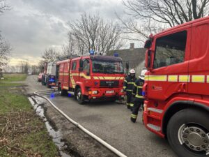 – Vi havde lavet det set up, at der kunne være en pyroman på spil, da der var ild i to huse. Det betød, at chaufførerne slog hornene fra før ankomsten for ikke at advare en eventuel pyroman. Reelt var det for ikke at skabe unødigt spektakel for de omkring 400 køer, der gik i nærheden, fortæller Ole Quebec Christensen.