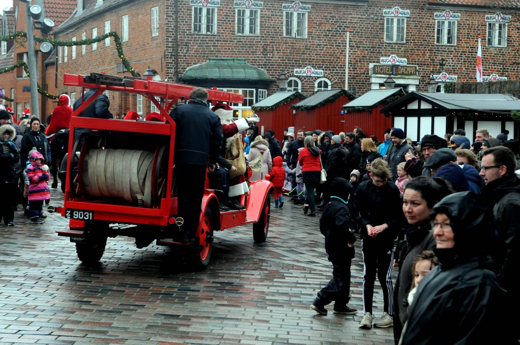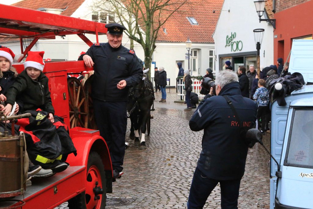 (Søndag den 15. december) Det var både en kold og våd omgang at køre med i juleoptoget, men trods regn og blæst var humøret højt, da den gamle Ford A blev hentet frem fra ”stalden2 og sendt ud i Ribes gader.